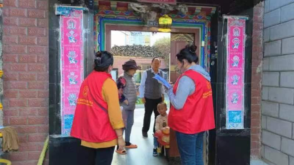 圖為桑伊社區(qū)工作者在開(kāi)展“幸福敲敲門(mén)”工作。