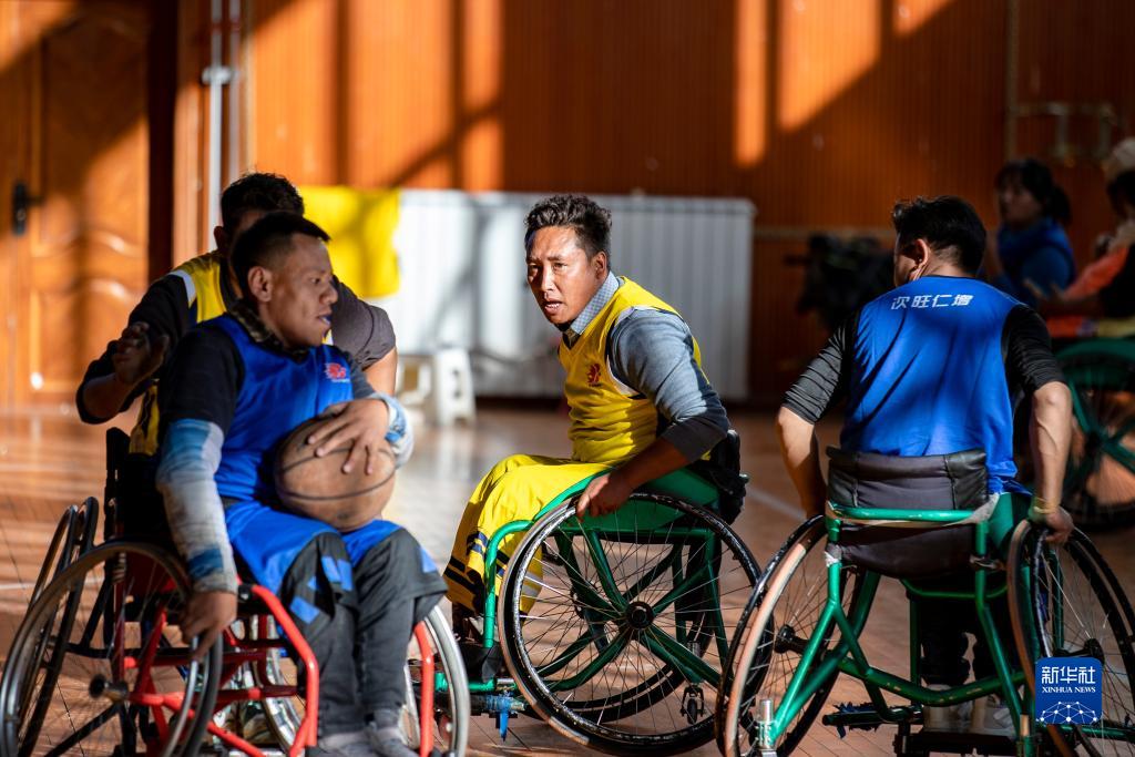 初冬時節(jié),西藏自治區(qū)和拉薩市輪椅籃球隊的20多名運動員堅持訓(xùn)練和比賽,對籃球的熱愛讓他們相聚在球場上,享受著運動的快樂。