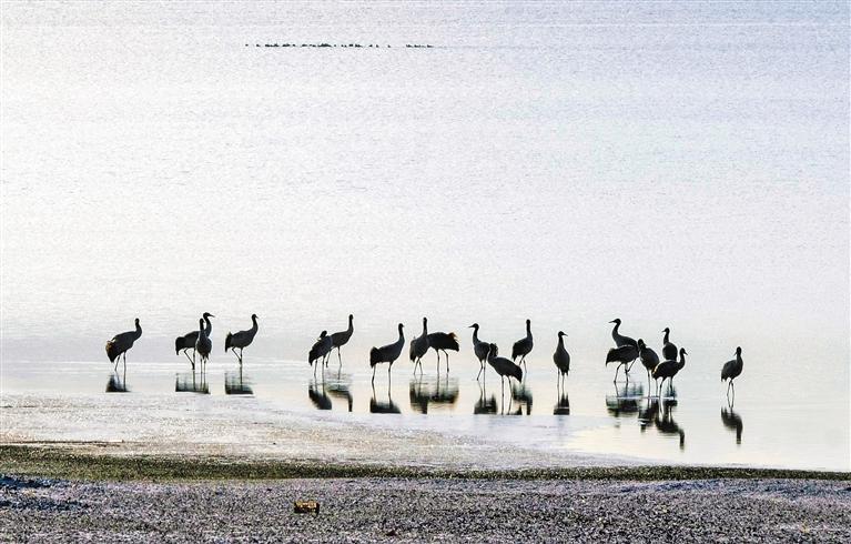“生態(tài)好不好,看鳥(niǎo)就知道?!苯眨谖鞑卦蕉摹袄吓笥选焙陬i鶴越來(lái)越多。每年3月中旬,黑頸鶴會(huì)從越冬地——雅江中游河谷及其支流拉薩河、年楚河流域的“一江兩河”地區(qū),飛去羌塘北部草原等地繁育后代;10月中下旬又從繁殖地——那曲的班戈縣、申扎縣、嘉黎縣,阿里的日土縣、普蘭縣,日喀則的昂仁縣及拉薩的當(dāng)雄縣返回到越冬地。黑頸鶴的成群遷徙、停歇或繁殖,正是生態(tài)環(huán)境持續(xù)向好的“最美注腳”。