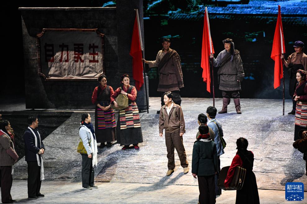 當(dāng)日,話(huà)劇《老西藏》在西藏大劇院首演。該劇是西藏自治區(qū)文化廳打造的重點(diǎn)原創(chuàng)劇目,聚焦不同時(shí)期文化、水利、交通、教育、衛(wèi)生等各條戰(zhàn)線(xiàn)上的西藏建設(shè)者,講述他們奉獻(xiàn)青春年華的熱血故事。