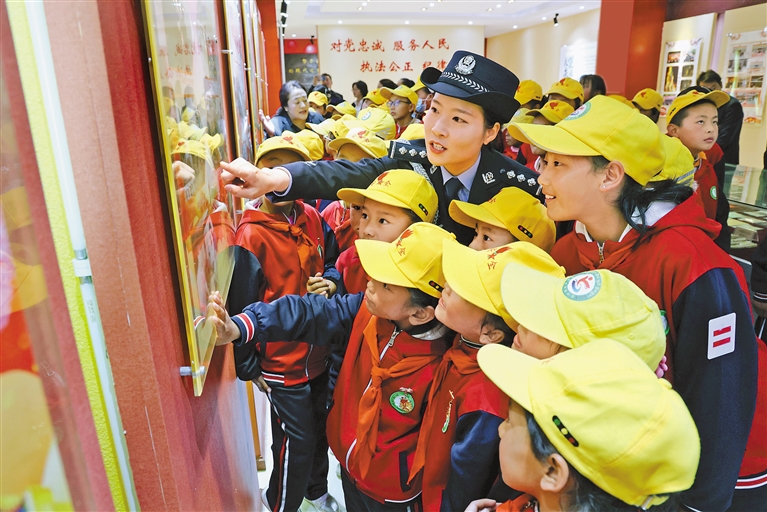 圖為亞東出入境邊防檢查站民警組織駐地小學生開展愛國主義教育。記者 張雪芳 攝