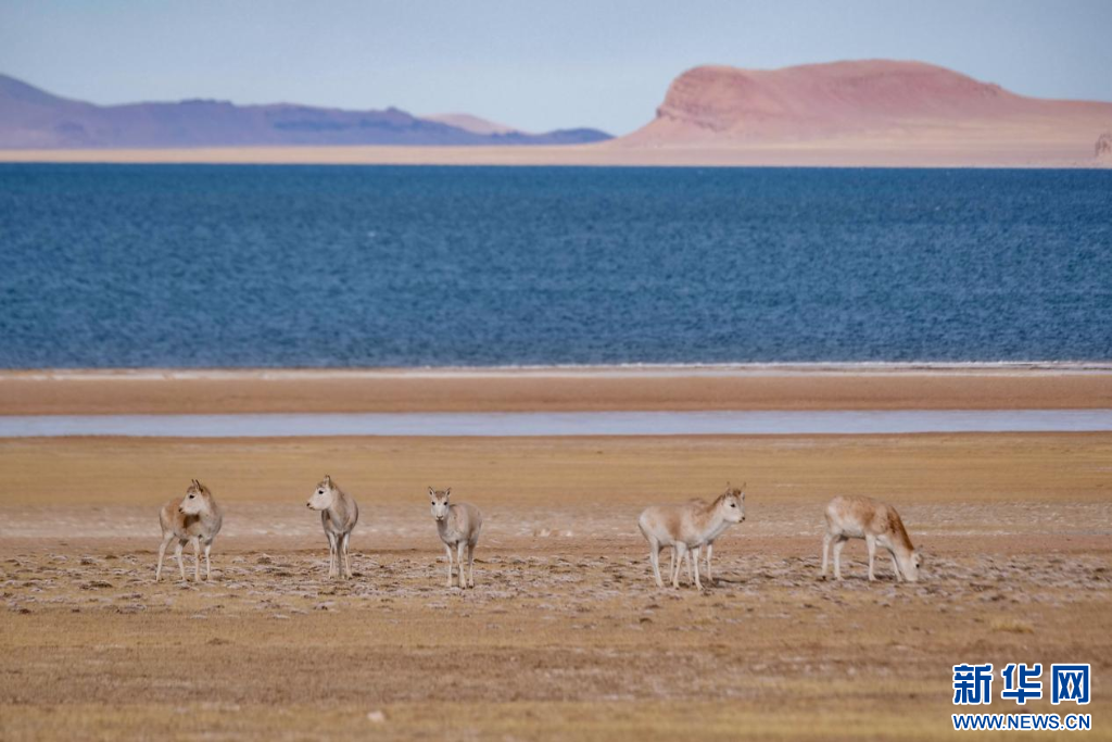12月15日,在色林錯湖畔拍攝的藏羚羊。新華網(wǎng) 旦增努布 攝