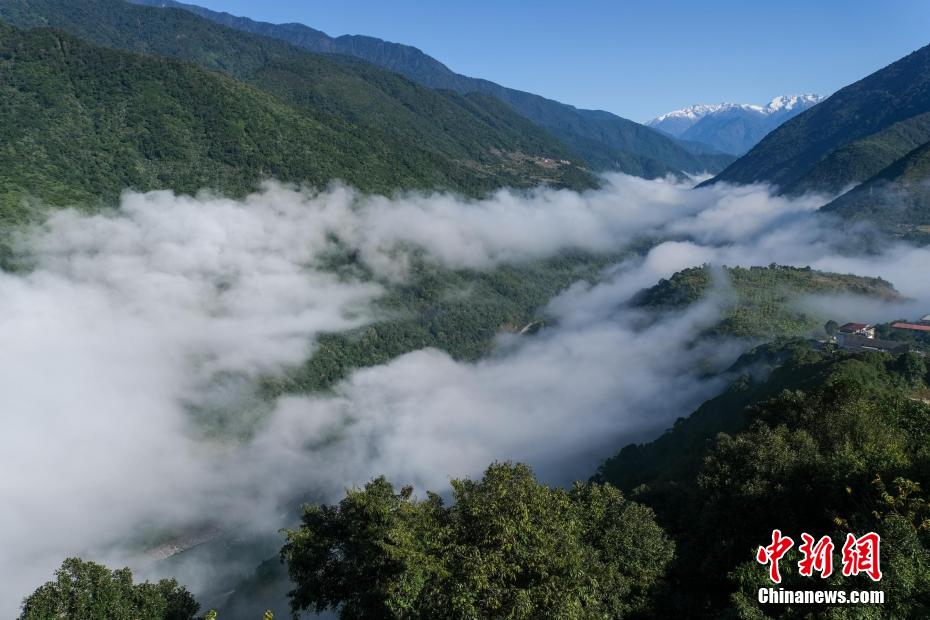 12月22日,雅魯藏布江云海與墨脫縣城。(無人機(jī)畫面)