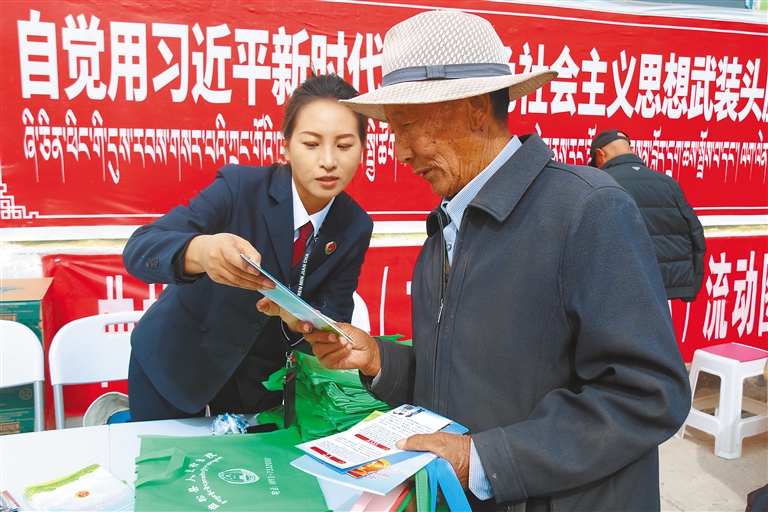 日前,曲松縣新時代文明實踐中心聯(lián)合曲松鎮(zhèn)新時代文明實踐所、瓊嘎村新時代文明實踐站開展“移風(fēng)易俗潤民心 鄉(xiāng)風(fēng)文明促振興”主題宣傳活動。圖為工作人員向群眾講解宣傳資料。