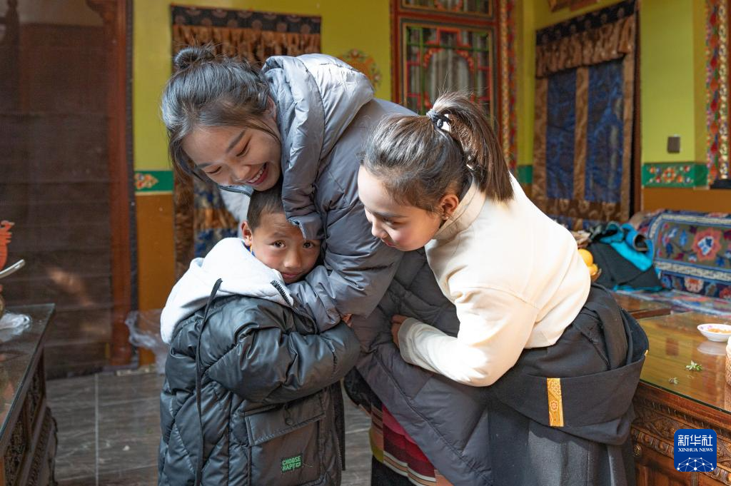 后來我們又去莫拉家拍攝了團圓飯、換新藏裝等場景。拍攝時,我需要穿藏裝和巴桑莫拉的女兒進行互動,而當(dāng)天日喀則的氣溫已經(jīng)到了零下,她發(fā)現(xiàn)我的雙手冰涼后,全程都用自己的手捂著我的手,想讓我暖和一點。拍攝結(jié)束以后,小朋友們也圍在我身邊抱著我,想用自己的方式給我傳遞一點溫暖。