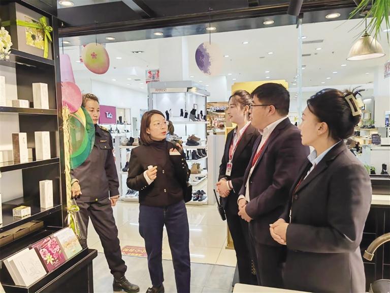 市場(chǎng)監(jiān)管部門執(zhí)法人員對(duì)化妝品店開展檢查。資料圖
