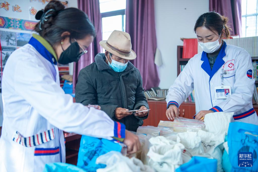 1月27日,拉布村村民在領取免費藥品。新華社記者 劉文博 攝