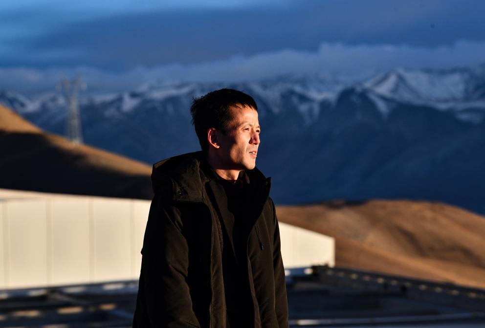 在阿里地區(qū)獅泉河鎮(zhèn)南部甲馬兒燈山海拔5100米的山頂上,我們見到了十年如一日守望璀璨星空的人——尤顯龍。他十八年前就開始為阿里天文臺(tái)的選址而工作,如今負(fù)責(zé)天文臺(tái)數(shù)據(jù)觀測(cè)和運(yùn)維設(shè)備。尤顯龍也是為阿里天文臺(tái)工作時(shí)間最長(zhǎng)的一位工程師。