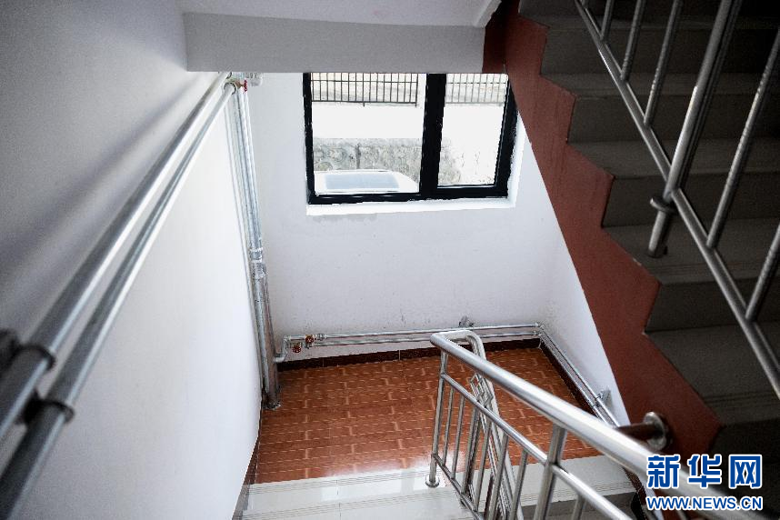 圖為措美縣公租房樓道內(nèi)排列整齊的暖氣管道(2月3日攝)。新華網(wǎng)發(fā) 李騰 攝
