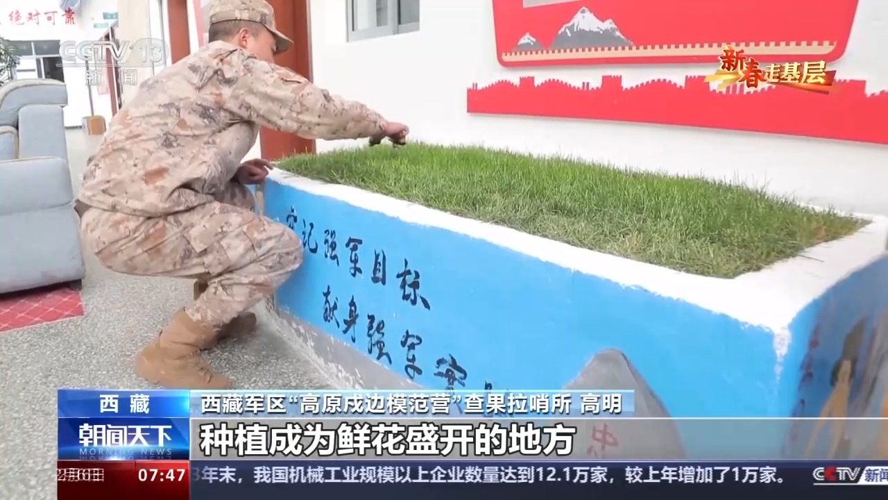 西藏軍區(qū)“高原戍邊模范營”查果拉哨所 高明:我們的戰(zhàn)士現在正在養(yǎng)護我們的花草。在海拔5318米的這個地方,我們的花草非常難長,為了能夠營造這種氛圍,我們還是想把這個地方能夠種植成為鮮花盛開的地方。