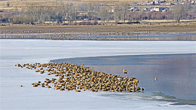 圖為在林周縣卡孜水庫越冬的水鳥。圖片由自治區(qū)林業(yè)調(diào)查規(guī)劃研究院提供。
