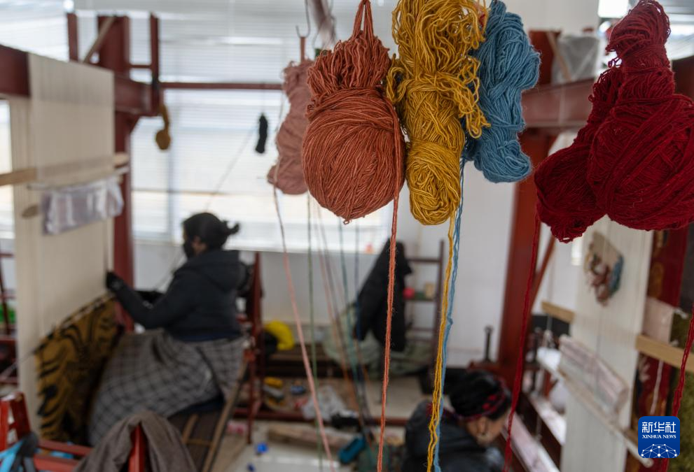 2月22日拍攝的編織藏毯所需的原材料羊毛線。新華社記者 旦增尼瑪曲珠 攝