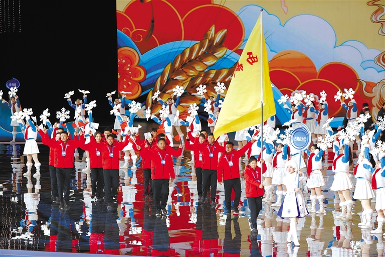 圖為西藏代表團亮相第十四屆全國冬季運動會開幕式。洛桑 索朗群培 攝