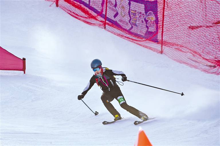 此次比賽共有兩條賽道,呈字母Y形,賽道全長1100米,累計爬升130米。選手們分別需要完成兩次穿板上升、轉換下滑,然后在接力區(qū)身體觸碰完成接力,比賽充滿挑戰(zhàn)。