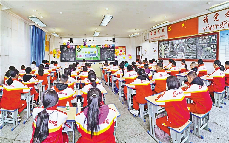 在林芝市第二小學(xué),學(xué)校布置了喜慶的龍年裝飾,教室文化墻裝點(diǎn)一新,老師們分發(fā)起糖果、牛奶。溫暖的“小驚喜”迅速調(diào)動(dòng)起學(xué)生返校的好心情;波密縣完全小學(xué)利用寒假對(duì)所有教室進(jìn)行了粉刷、維修,對(duì)學(xué)生食堂進(jìn)行了升級(jí)改造,干凈、整潔的校園,讓學(xué)生們格外激動(dòng)……“今天很開心,見到了老師和同學(xué),也見到了更美麗的校園。新的學(xué)期,我要繼續(xù)做好班干部工作,取得更大的進(jìn)步?!绷种ナ械诙W(xué)學(xué)生索朗次仁信心滿滿地說。