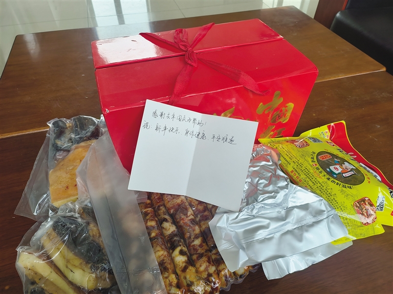 民警們熱心的幫助、暖心的話語,在曾先生心中留下了深刻的印象。雖然已經過去了幾個月,但每每想起那次相遇,他的心頭總是涌起一股暖流。帶著這份感激和惦念,曾先生特意為孔瑪邊境派出所的民警們寄去了家鄉(xiāng)特產臘肉和香腸,還有一張寫滿祝福的卡片。