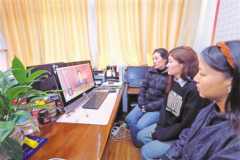3月4日15時(shí),全國政協(xié)十四屆二次會議在人民大會堂開幕,西藏各族干部群眾通過各種方式收聽收看開幕會。