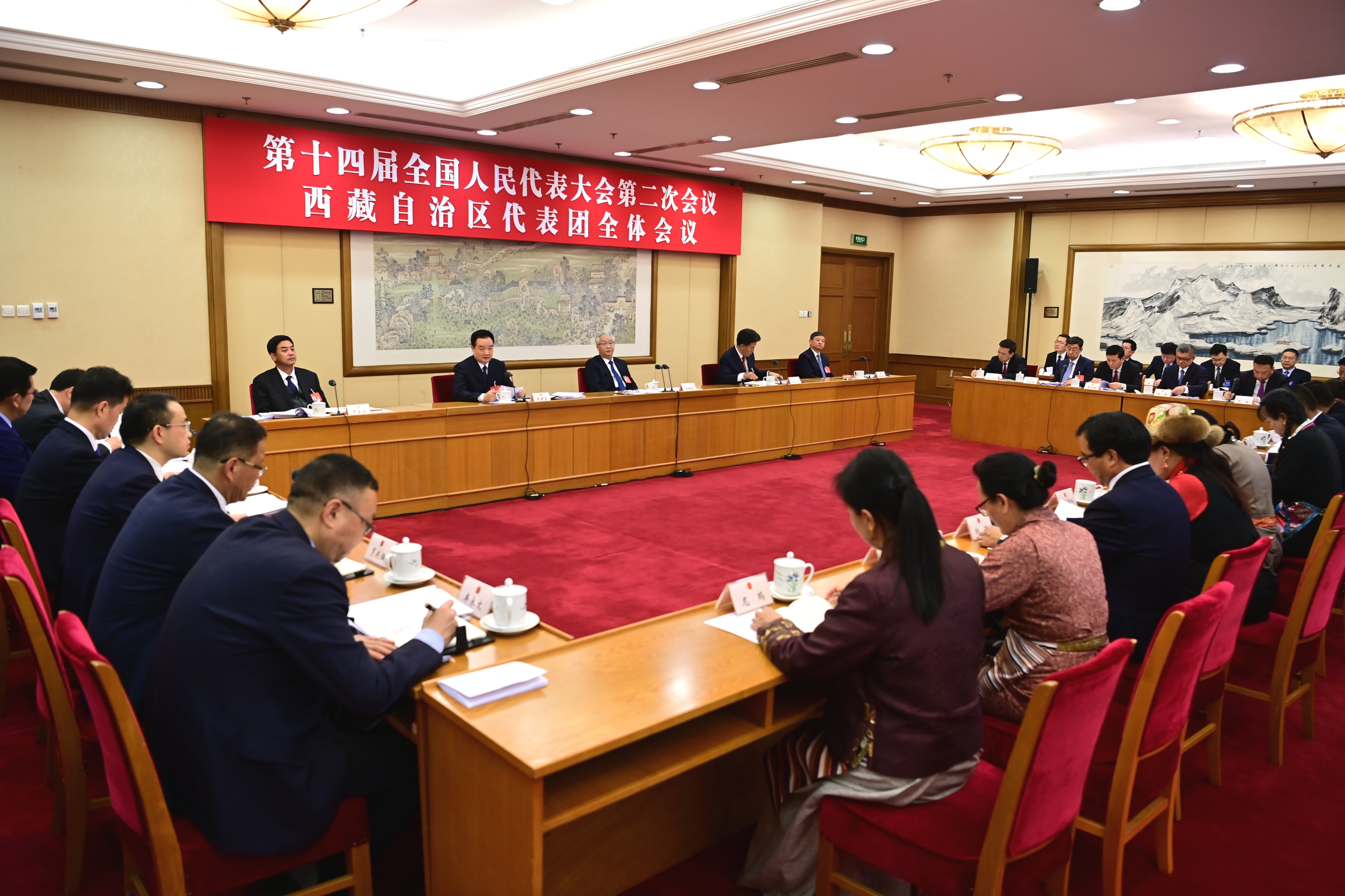 3月5日下午,十四屆全國人大二次會議西藏代表團舉行全體會議,審議政府工作報告。