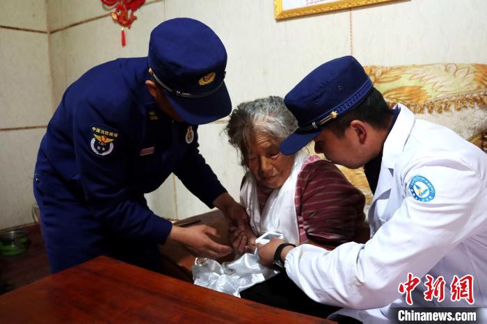 圖為消防救援人員為孤寡老人測(cè)量血壓。吳蕾蕾攝