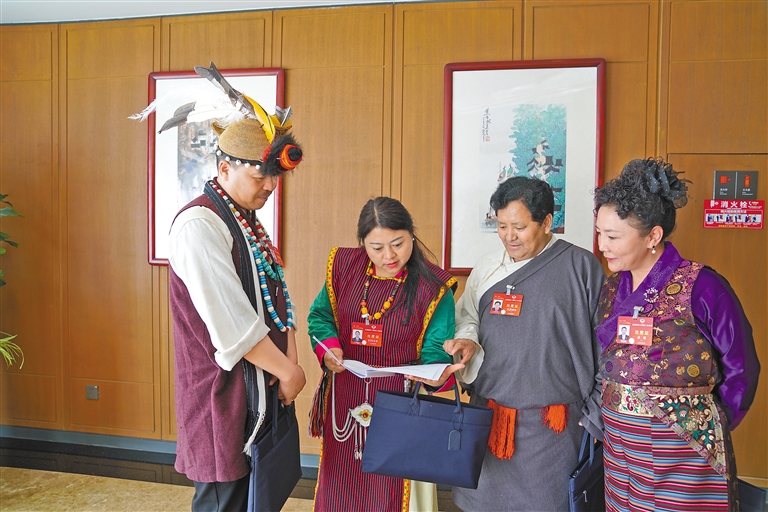 圖為3月6日上午,全國政協(xié)十四屆二次會議繼續(xù)進(jìn)行小組討論。圖為來自少數(shù)民族界的住藏全國政協(xié)委員,在會議結(jié)束后圍繞政府工作報(bào)告交流討論。
