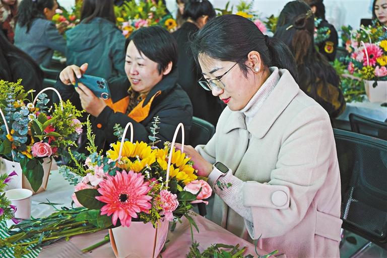 近日,拉薩市堆龍德慶區(qū)婦聯(lián)開展“巧手插花綻芳華·魅力巾幗展風(fēng)采”花藝培訓(xùn)特色課程。圖為婦女在制作花藝作品。 拉巴桑姆 攝