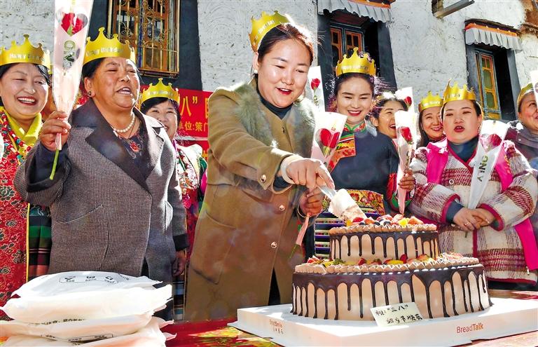 為進一步豐富社區(qū)婦女同胞的精神文化生活,展示社區(qū)巾幗風(fēng)采,3月8日,拉薩市策門林社區(qū)和藥王山社區(qū)共同舉辦了“巾幗心向黨 奮進新征程‘三八’國際勞動婦女節(jié)”活動,轄區(qū)婦女歡聚一堂,慶祝節(jié)日。圖為轄區(qū)女性共同切蛋糕慶祝節(jié)日。 旦增蘭澤 攝