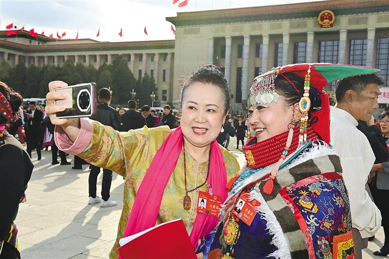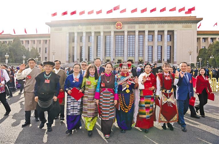 圖為閉幕會結束后,西藏全國人大代表信心滿懷走出會場。旦增西旦 攝