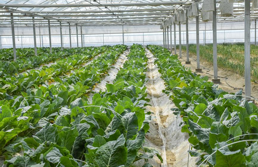 戈壁設(shè)施農(nóng)業(yè),不是簡單地在戈壁灘上開墾土地發(fā)展農(nóng)業(yè),而是要將光、熱、水、肥、土壤等一系列生產(chǎn)要素進(jìn)行合理配置。綠之源的規(guī)劃建設(shè),走出了一條節(jié)地、節(jié)水、高效循環(huán)的戈壁生態(tài)農(nóng)業(yè)發(fā)展路子。節(jié)地,充分利用了閑置的戈壁荒灘資源,不占耕地,有效解決了菜糧爭地矛盾;節(jié)水,日光溫室作物生產(chǎn),全部配套了膜下滴灌技術(shù),使有限的水資源得到了高效利用;高效循環(huán),溫室采取“套種”種植模式,讓土地不空茬,連作多種作物,有效提高溫室利用率,實(shí)現(xiàn)“全年種植、全年采收”,改善了土壤沙化環(huán)境,提升了土壤地力,更是提高了蔬菜品質(zhì)。