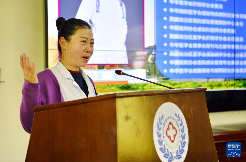 4月3日,北京協(xié)和醫(yī)院主任醫(yī)師龍笑在西藏自治區(qū)人民醫(yī)院做學(xué)術(shù)報(bào)告。新華社記者 張汝鋒 攝