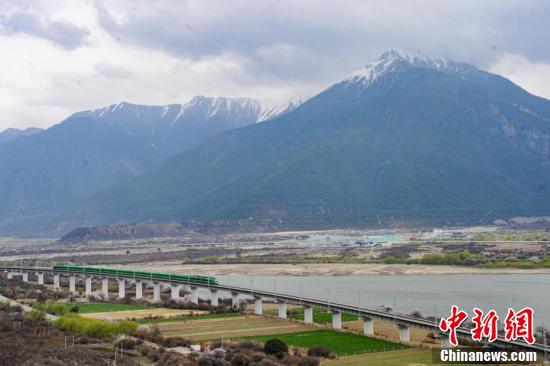 據(jù)悉,拉林鐵路是一條連接西藏拉薩市與林芝市的國(guó)鐵Ⅰ級(jí)單線電氣化鐵路,全長(zhǎng)435公里,設(shè)計(jì)時(shí)速160公里,于2021年6月25日開(kāi)通運(yùn)營(yíng)。圖為穿梭在桃花林中的拉林鐵路高原復(fù)興號(hào)。