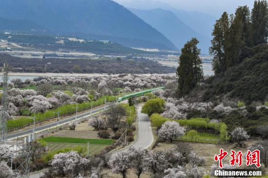 復(fù)興號(hào)動(dòng)車(chē)組不僅是一種便捷的交通方式,更成為了一種獨(dú)特的旅游體驗(yàn),讓游客能夠近距離欣賞到西藏林芝春季獨(dú)特的自然美景。圖為穿梭在桃花林中的拉林鐵路高原復(fù)興號(hào)。