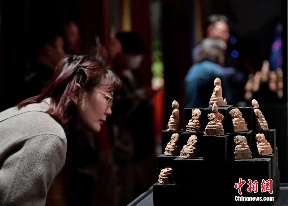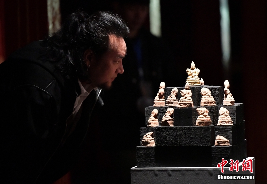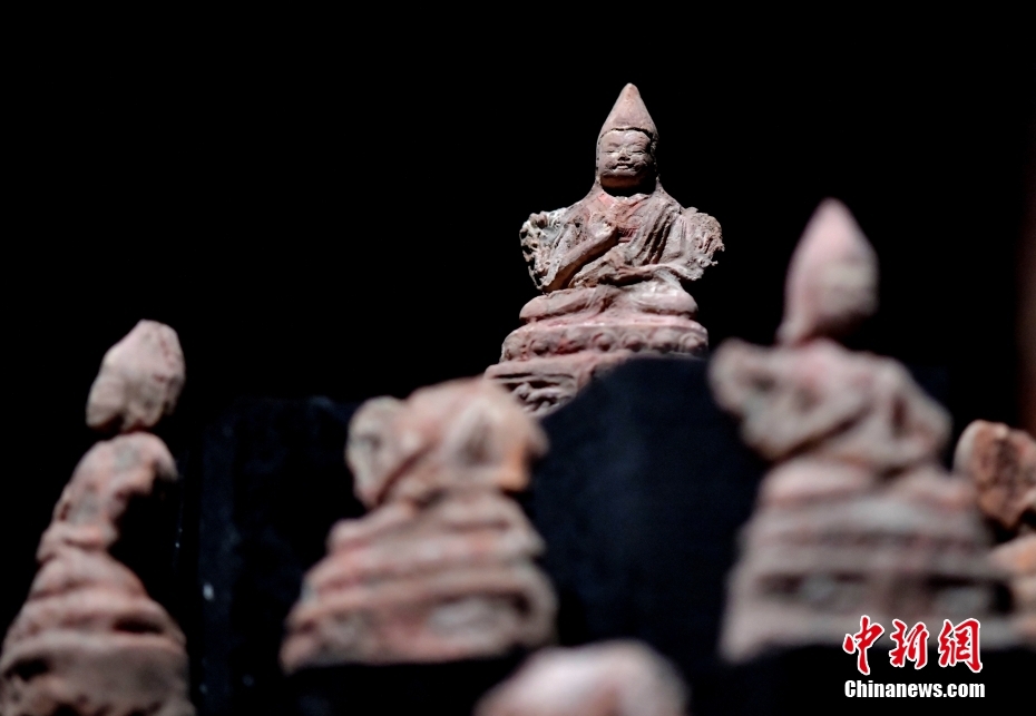 4月13日下午,“聚沙為塔——吉崩崗拉康文物回歸特別展覽”在拉薩吉本崗藝術(shù)中心開(kāi)幕,以近期回歸古建的3000余件文物為主要內(nèi)容,梳理了古建歷史與文物源流。圖為展覽中的擦擦(脫模泥塑造像)。