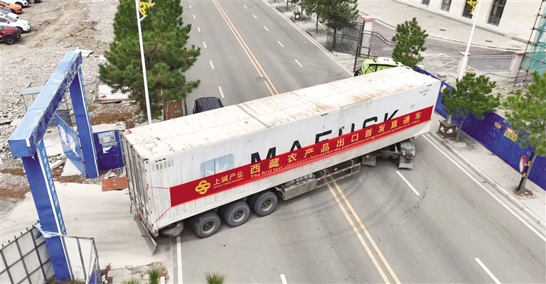 西藏農(nóng)產(chǎn)品出口首發(fā)直通車。圖由林芝市委宣傳部提供