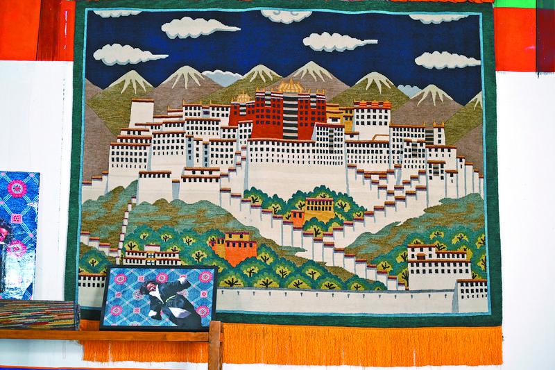 圖為喀瓦堅(jiān)藏毯廠生產(chǎn)的以“布達(dá)拉宮”為題材的藏毯。記者 趙越 攝
