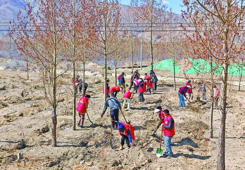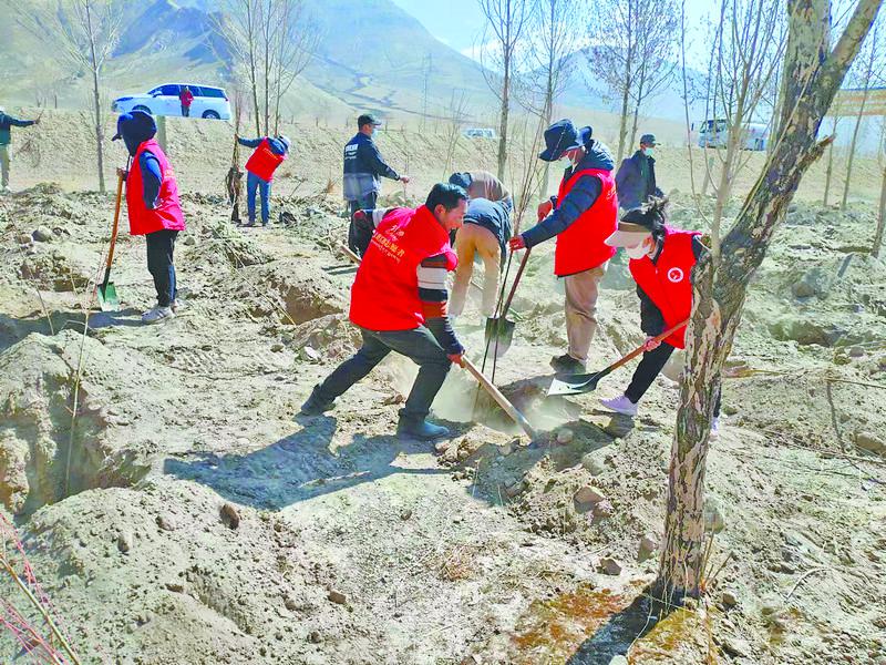 植樹造林現場。記者 旦增嘎瓦 攝