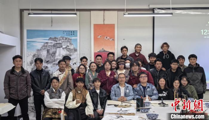 西藏大學(xué)藝術(shù)學(xué)院師生在《國畫寫意》課程落幕后合影留念。西藏大學(xué)藝術(shù)學(xué)院供圖