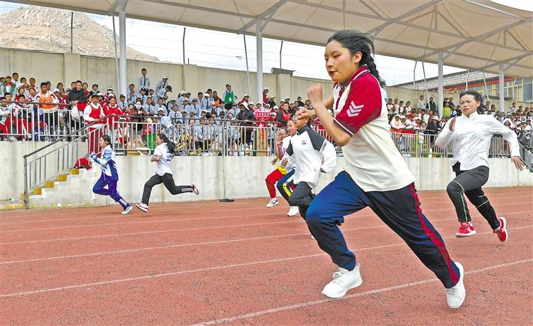 攝拉薩江蘇中學(xué)學(xué)生參加100米短跑比賽。旦增蘭澤 攝