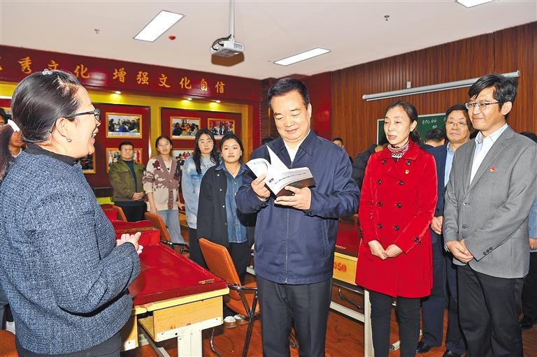 調(diào)研中,王君正指出,師范院校承擔(dān)著為中小學(xué)培養(yǎng)師資的重任,責(zé)任艱巨、使命光榮。要堅(jiān)持正確辦學(xué)方向,自覺用習(xí)近平新時(shí)代中國特色社會主義思想指導(dǎo)學(xué)校建設(shè)辦學(xué)實(shí)踐,堅(jiān)持不懈用馬克思主義中國化最新成果武裝廣大師生頭腦。堅(jiān)持立德樹人根本任務(wù),圍繞為黨育人、為國育才,遵循教育規(guī)律和人才成長規(guī)律,努力培養(yǎng)德智體美勞全面發(fā)展的社會主義建設(shè)者和接班人。進(jìn)一步加強(qiáng)師范教育體系建設(shè),聚焦經(jīng)濟(jì)社會發(fā)展新任務(wù),積極推進(jìn)師范教育教學(xué)改革,突出需求導(dǎo)向,促進(jìn)教育鏈與人才鏈、產(chǎn)業(yè)鏈、創(chuàng)新鏈深度融合,提高辦學(xué)質(zhì)量和辦學(xué)效益。高度重視教師隊(duì)伍建設(shè),把師德師風(fēng)建設(shè)擺在首要位置,提高教師培養(yǎng)培訓(xùn)質(zhì)量,培養(yǎng)造就一支師德高尚、業(yè)務(wù)精湛、結(jié)構(gòu)合理的高素質(zhì)專業(yè)化教師隊(duì)伍。
