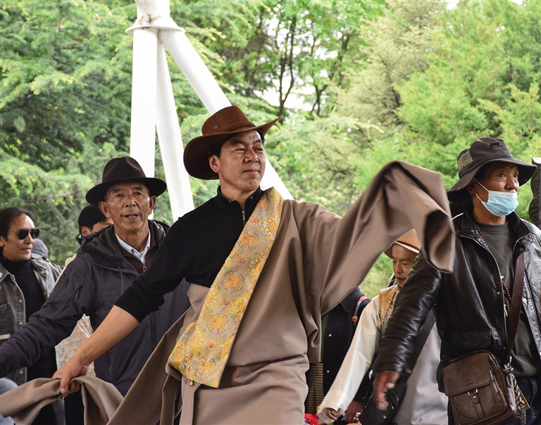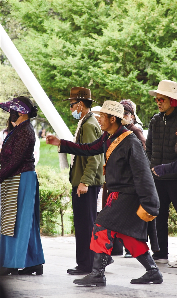在采訪過程中,記者感受到許多年輕人都熱愛著鍋莊,而鍋莊的“火出圈”也并非偶然,鍋莊校園操、公園里單獨開辟的鍋莊舞場地、各種各樣“走出”西藏、風(fēng)行全國的鍋莊舞……年輕人心中已逐漸培植起傳承西藏優(yōu)秀傳統(tǒng)文化的心智與自覺。這些都促使越來越多朝氣蓬勃的年輕人成為中華優(yōu)秀傳統(tǒng)文化的積極繼承者、參與者、傳播者,為中華優(yōu)秀傳統(tǒng)文化搭建起從過去走向未來的對話橋梁。