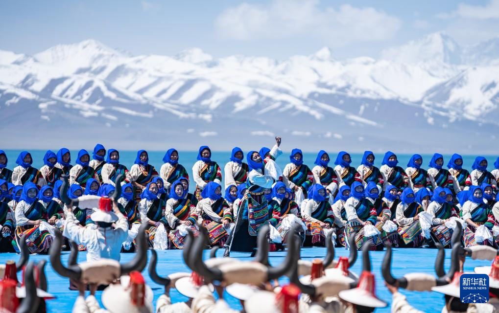 舞蹈演員正在納木錯開湖活動現(xiàn)場表演(5月19日攝)。新華社記者 丁增尼達(dá) 攝