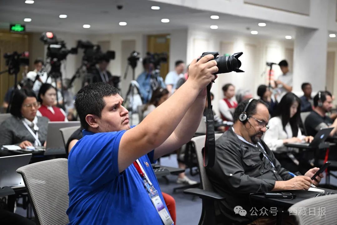 嚴金海與自治區(qū)副主席徐志濤,自治區(qū)發(fā)展和改革委員會黨組書記、副主任王念東,自治區(qū)生態(tài)環(huán)境廳廳長汪曉冬,就記者提出的穩(wěn)增長、擴消費、增動能,美麗西藏建設、文化旅游等特色優(yōu)勢產(chǎn)業(yè)發(fā)展、文化保護發(fā)展、西藏未來遠景舉措等方面問題作了回答。