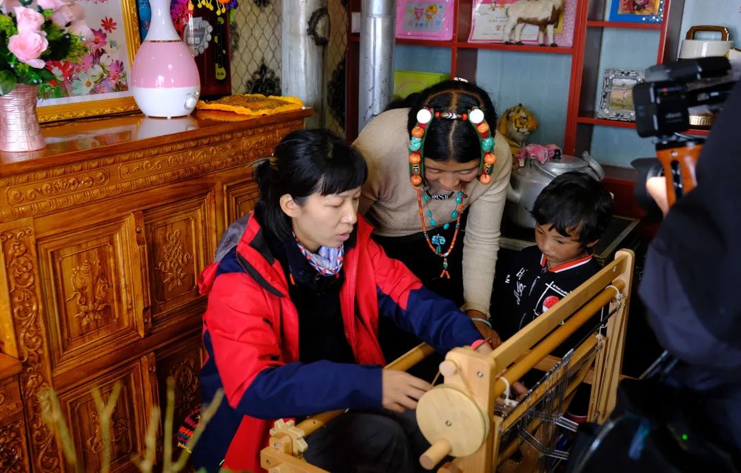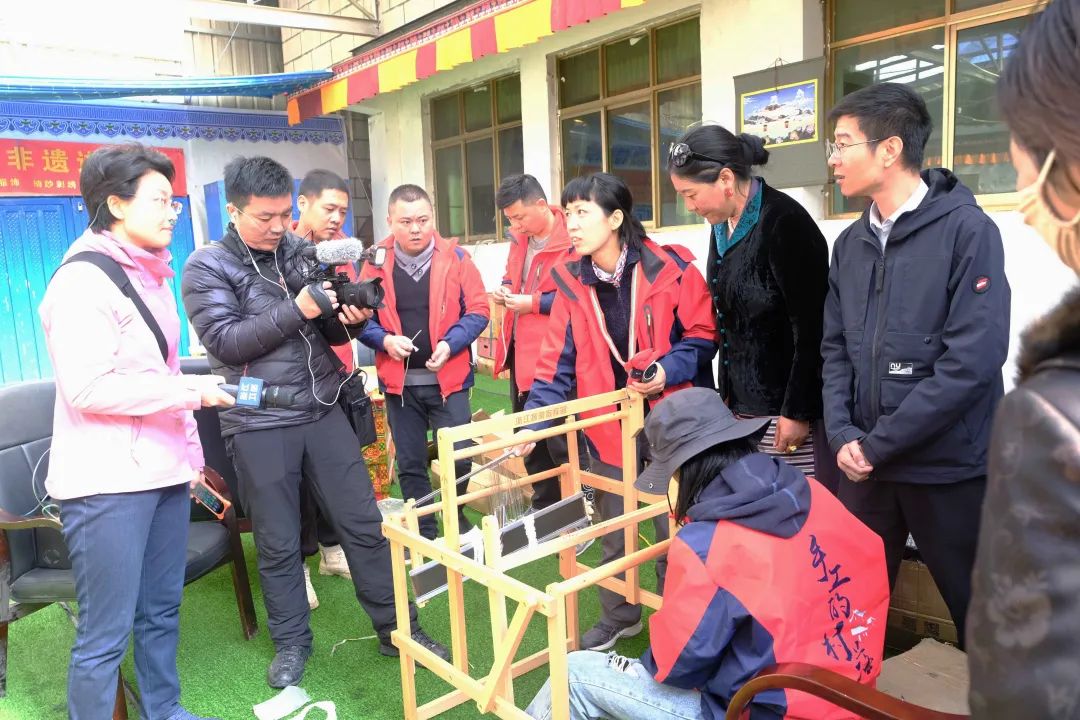 22號,我們和當?shù)氐哪僚砗头掂l(xiāng)大學生們一起組裝織布機,在杭州覺得非常簡單的工作,在這里顯得非常費力,高海拔的體力消耗,一會兒就要坐下大喘氣休息。慶幸本地的大學生與牧女們非常好學,第一天大家齊心協(xié)力組裝完成了30臺織布機,當天培訓中正好遇見了浙江衛(wèi)視拍攝“大山里的浙江人”大型融媒體新聞行動!看著浙江來的新聞媒體人都隨身吸氧,感嘆來的人真的是太不容易了,想為浙江人鼓掌!