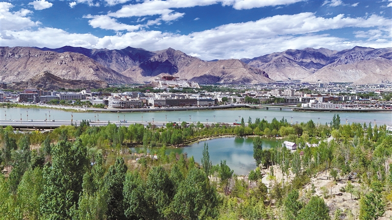 從拉薩南山公園遠(yuǎn)眺拉薩市區(qū)。記者 潘多 攝