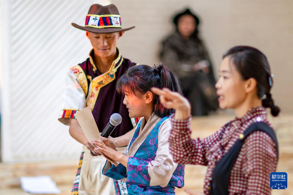 6月5日,拉薩市特殊教育學(xué)校的孩子們在新書發(fā)布現(xiàn)場表演舞蹈。新華社發(fā)(旦增努布 攝)