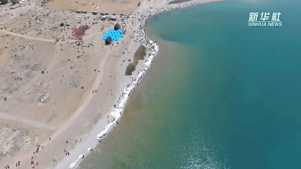 隨著氣溫的逐漸轉(zhuǎn)暖,納木錯進入開湖期。從高空俯瞰,冰面開始解凍,漂浮的冰塊散落在碧綠的湖面上,與遠處的雪山相互輝映,美麗景色讓人嘆為觀止。