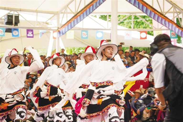從傳統(tǒng)民族舞到現代創(chuàng)新舞,每支舞蹈都蘊含著藏族人民對家鄉(xiāng)的熱愛和對美好生活的向往。比賽中,參賽人員身著特色民族服飾,伴隨著優(yōu)美激昂的旋律,踩著歡快的節(jié)拍,以飽滿的熱情和精湛的舞技,演繹了一場精彩而富有特色地域文化的廣場舞盛宴,凸顯了非物質文化遺產的傳承創(chuàng)新發(fā)展。