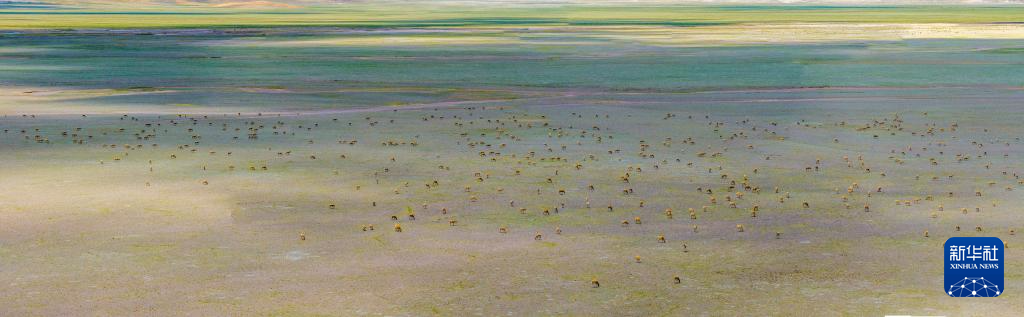 藏羚羊在魯確塘草原集結(無人機照片,6月8日攝)。新華社記者 姜帆 攝