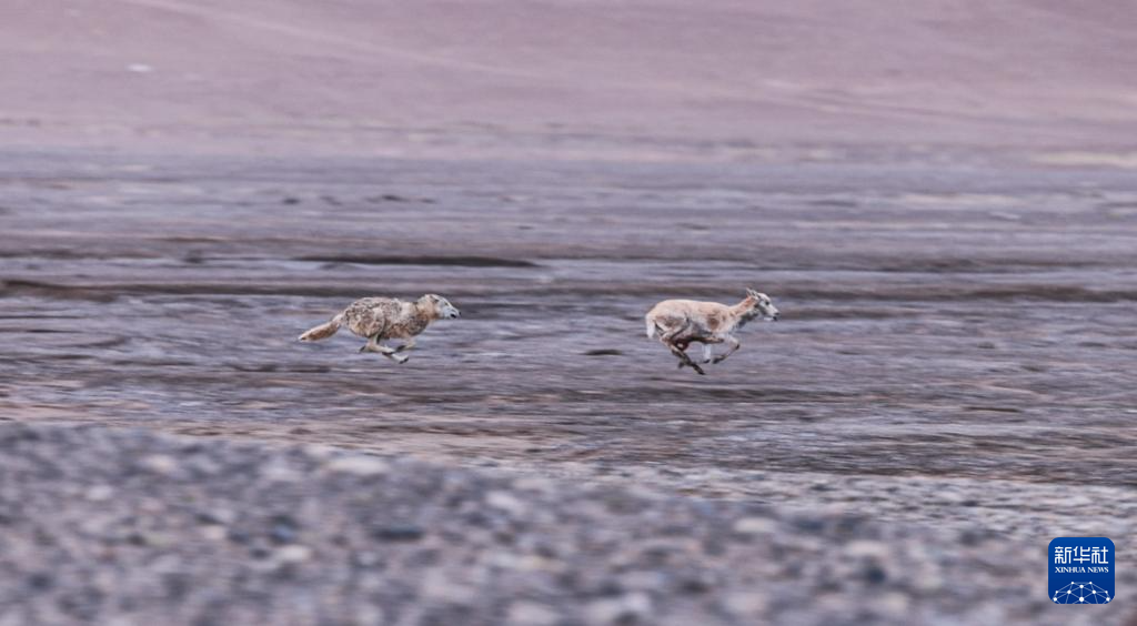 6月14日,一只野狼在追逐一只懷孕的母藏羚羊(視頻截圖)。新華社發(fā)(達瓦多吉攝)