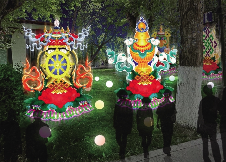 記者了解到,“點(diǎn)亮拉薩——秦淮燈會(huì)”在宗角祿康公園東門(mén)設(shè)置大型燈組,搭配拉薩的吉祥物牦牛、江蘇的吉祥物麋鹿,燈組用拉薩經(jīng)典配色,搭建飄逸的彩帶雙翼,表達(dá)“蘇拉一家親,攜手向未來(lái)”的寓意。在公園走廊里、草坪上,還用精致的現(xiàn)代光影作品,安排展示江南煙雨、小橋流水、青磚黛瓦、梅瓶明珠、桃花仙鶴、油傘折扇、上元燈彩等富有江蘇特色的美景雅韻以及具有拉薩特色的建筑和文化精品。