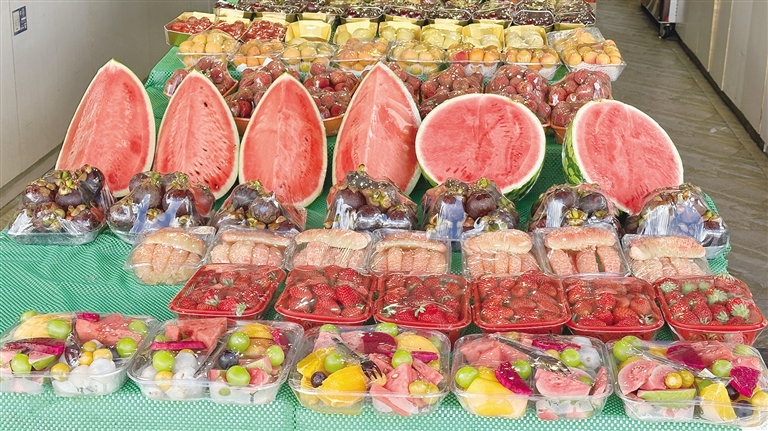 在納金綜合批發(fā)商貿(mào)城內(nèi),時(shí)令水果成為了絕對(duì)的“主角”,攤位上擺放的各類水果琳瑯滿目,令人目不暇接。過往的居民紛紛駐足挑選,享受這場由水果帶來的味蕾盛宴。“最近新鮮水果上市了,我想嘗嘗看?!崩_市民張女士一邊挑選著西瓜,一邊對(duì)記者說,“老板說這種麒麟西瓜無籽皮薄,口感清甜,而且價(jià)格親民,我打算買一個(gè)回家給孩子嘗嘗?!?/p>